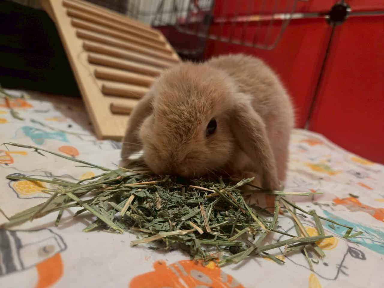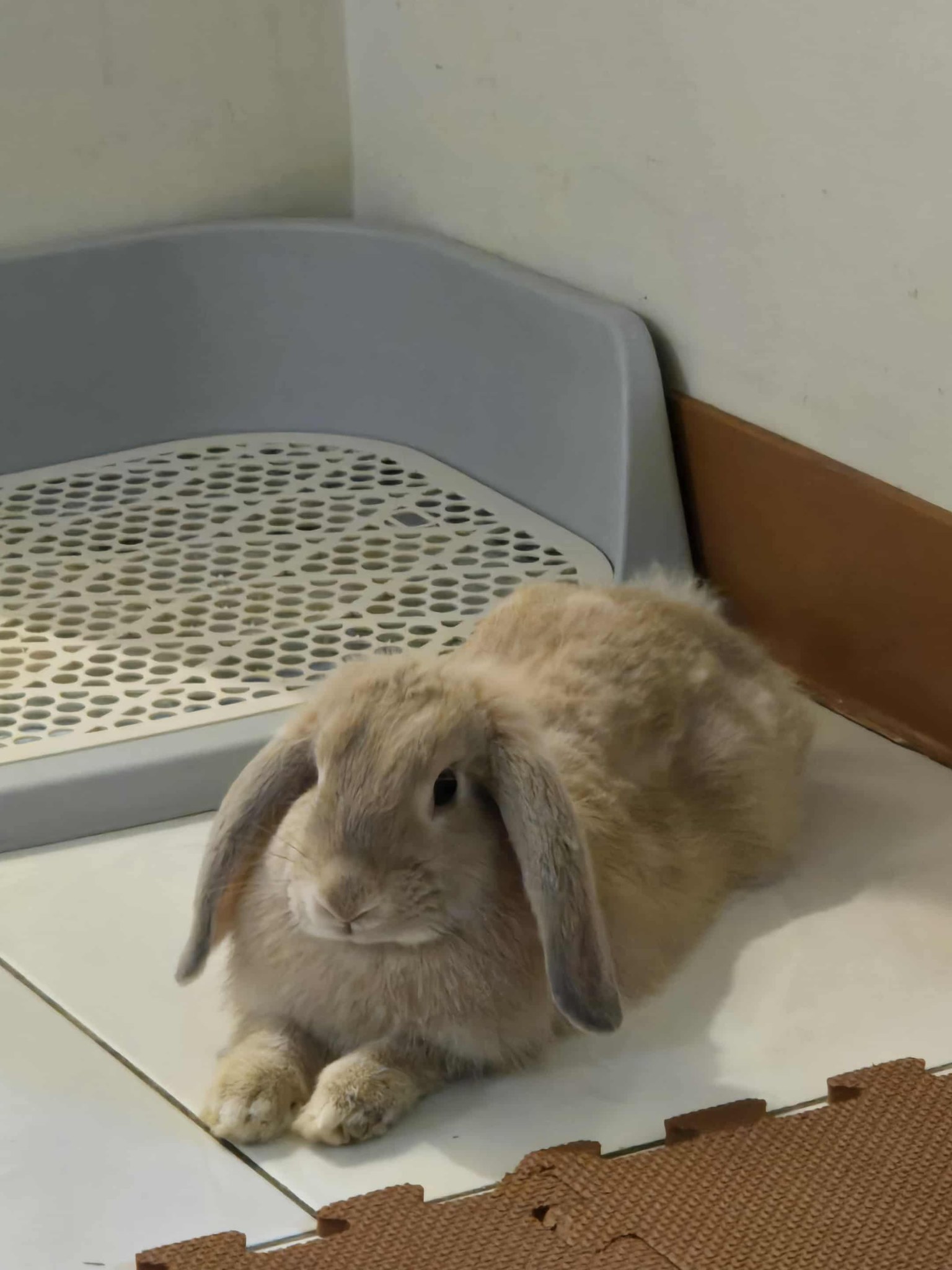 在丹鳳高中國中部校園內腳踏車停車場草堆發現的流浪兔,取名:丹丹