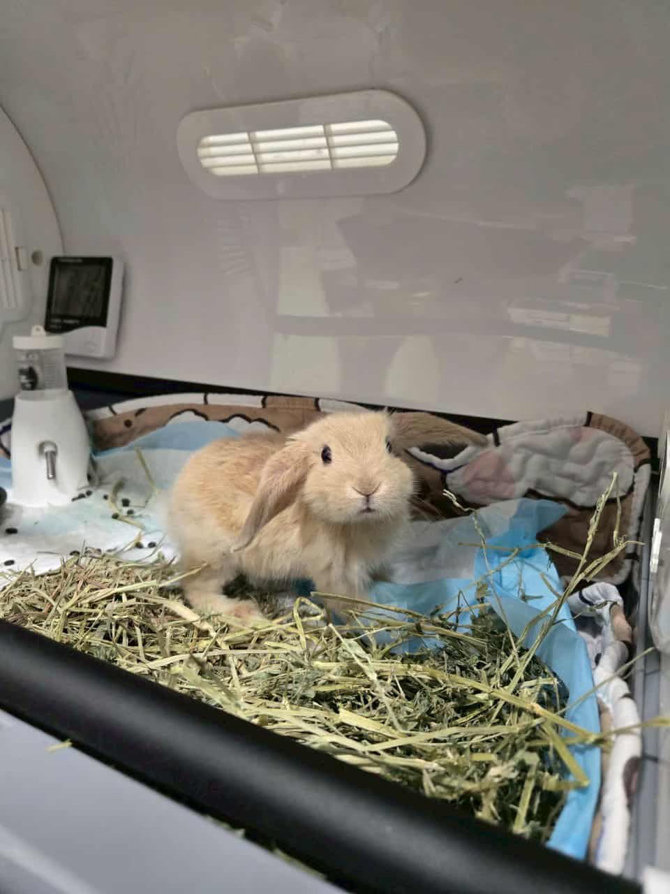 在丹鳳高中國中部校園內腳踏車停車場草堆發現的流浪兔,取名:丹丹