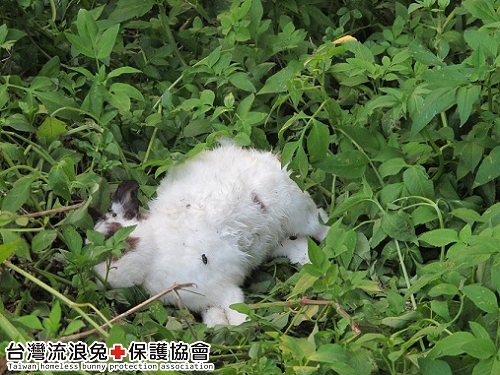發現兔毛跟兔便後,原以為兔兔們會在附近不遠處徘徊, 但救援人員卻遲遲找不到牠們的蹤影,便前去詢問附近種菜的阿伯。 結果阿伯說~兔兔們似乎是跑出空地,被附近的野狗追咬, 每隻都走了,沒有一隻倖存… 附近的佛堂看兔兔很可憐,所以已將牠們埋好了。